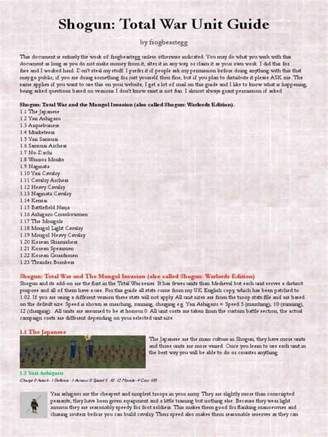 Download The Unofficial Shogun: Total War Unit Guide rtf